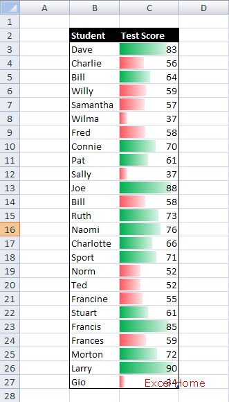 You would see that your data now looks like this, which makes it easy to spot the failing grades.