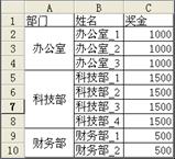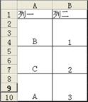 如果在排序的时候,Excel提示“此操作要求合并单元格都具有相同大小”,则说明数据区域中包含合并单元格,并且合并单元格的大小各不相同。例如图130?2所示的表格,A列的数据是由合并单元格组成,而B列和C列都没有合并单元格。此时如果对整个数据区域的排序操作将无法进行。