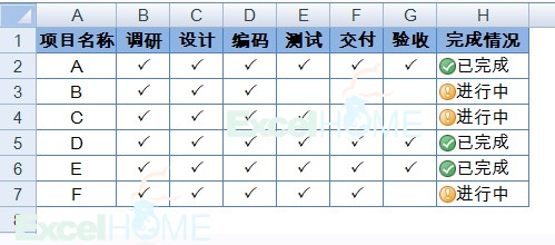 巧用Excel图标集标识项目完成状态