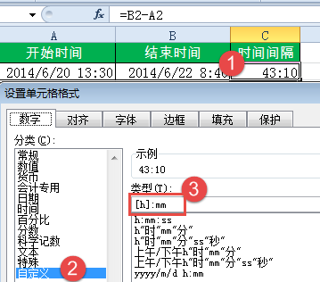A2是开始时间,B2是结束时间,如何计算出C2显示的结果呢?