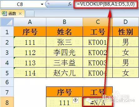 三、如果查找的值不在数据表的第一列,也会出现错误值。