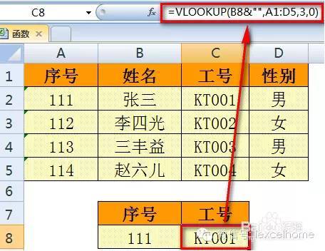 如下图,【工号】信息在数据表的第二列,要返回的是第一列的值,因此公式返回错误。